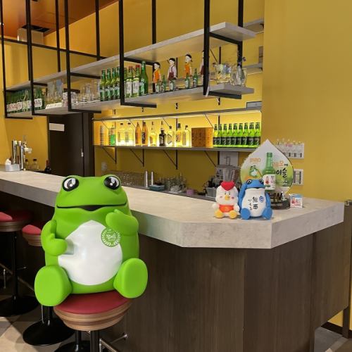 カウンターにはチャミスルがたくさん並んでいます♪もちろん店内でお飲みいただけますし、チャミスルを背景にオシャレに写真を撮るものOK!